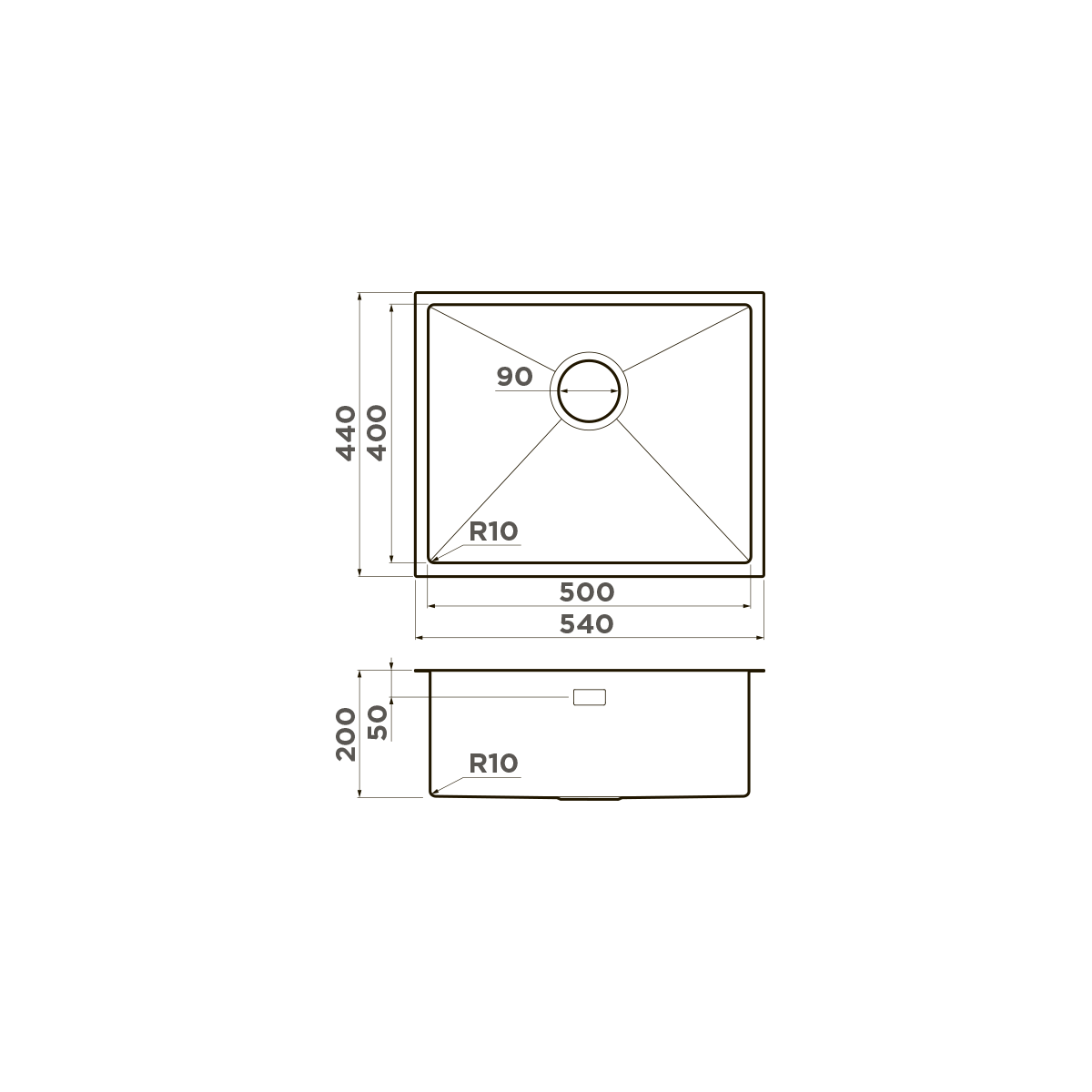 - Размер мойки Ширина: 540, Высота: 440, Глубина: 200